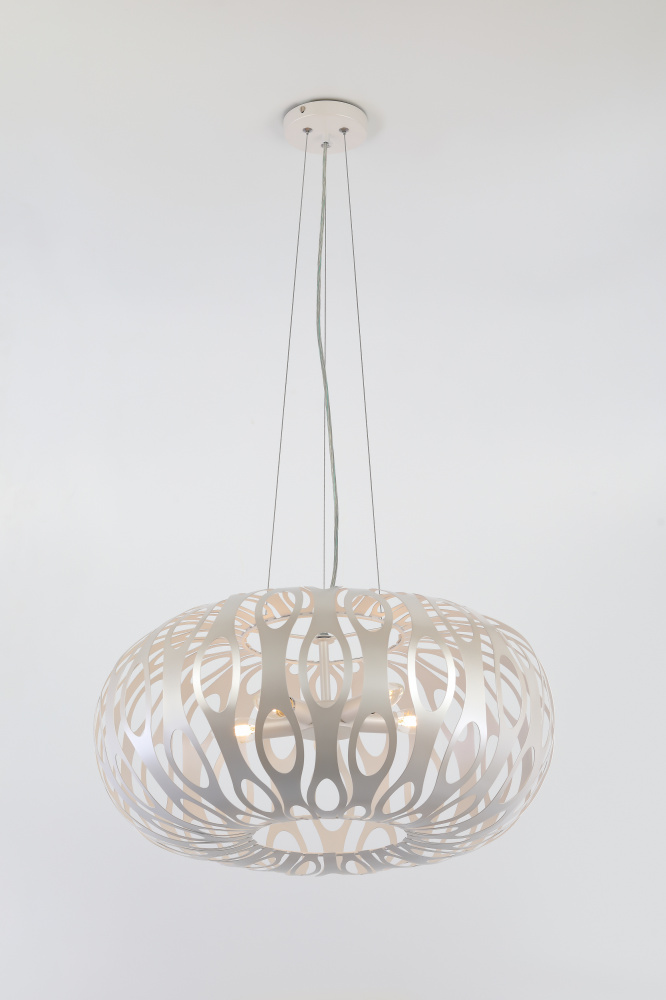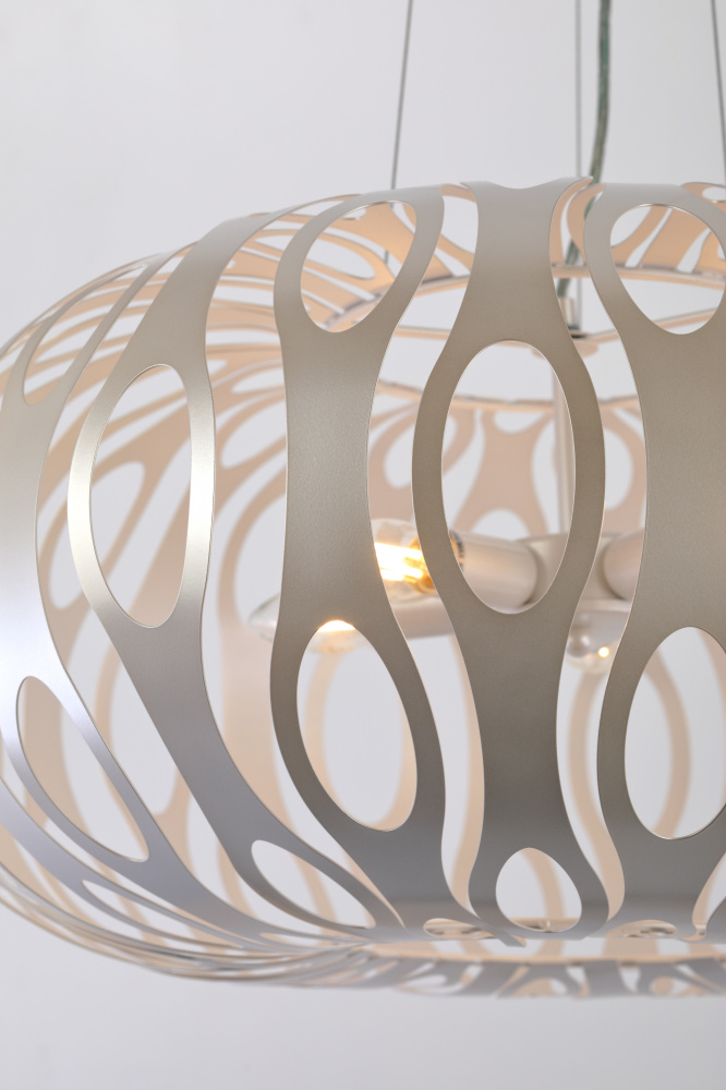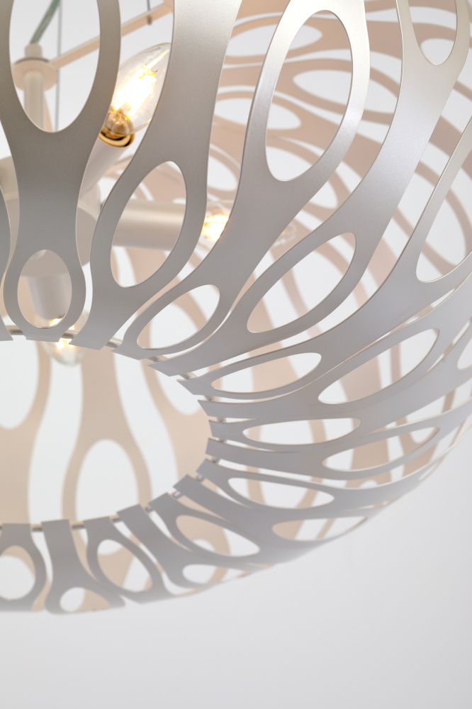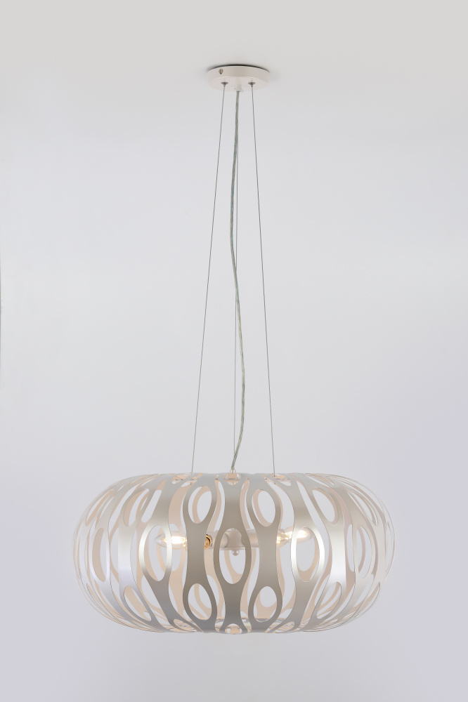 Металлические светильники с уникальной геометрией и благородным жемчужным окрашиванием. Невесомость и воздушность металла создана новой методикой высокоточной лазерной резки. Вы полюбите Rivoli Meike за необычный световой рисунок, который словно по волшебству появится на стенах, потолке, на полу. Эта серия преобразит любой интерьер! Коллекия представлена подвесной люстрой на 5 ламп.