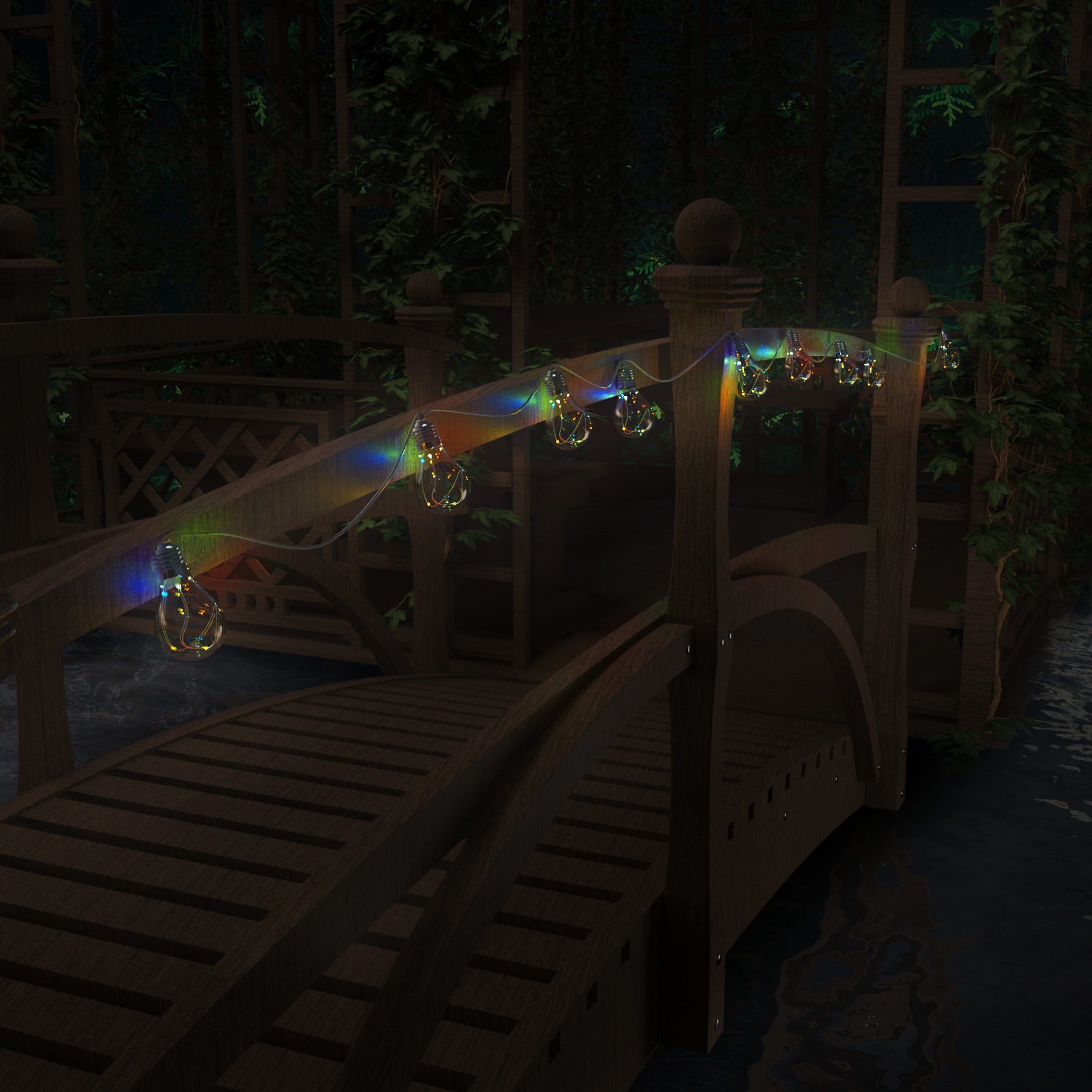 Мультицветные лампы меняют цвет, создавая праздничное настроение.