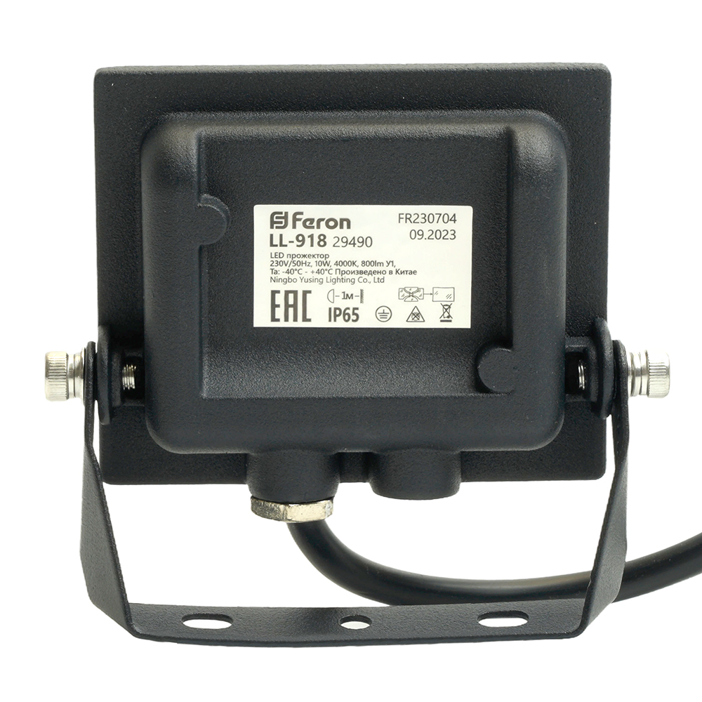 Прожектор светодиодный многоматричный с монтажным креплением на кронштейн, (ДО) FERON LL-918, 10W, 4000К (белый), 230V/50Гц, 1000Lm, IP65, угол рассеивания 120°,*SMD2835, раб.t -40°C - +40°C, цвет чёрный, корпус алюминий литой под давлением + стекло, 104*92*21 мм
