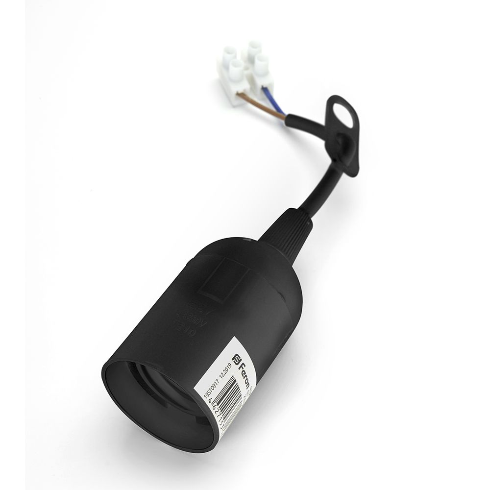 Патрон для ламп общего назначения FERON LH108 250 V E27, самозатухающий пластик, длина провода 0,1м, цвет черный, 38*38*55мм