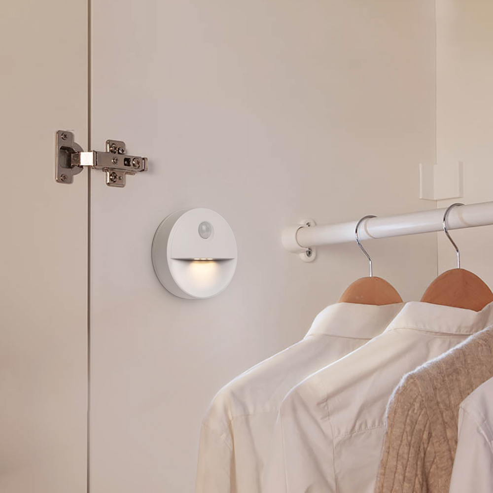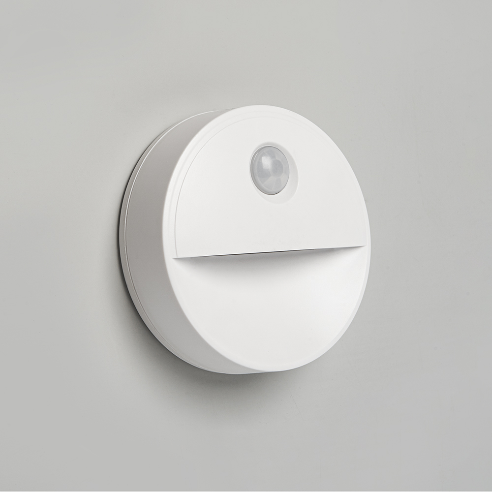 Светильник с датчиком движения и освещенности 2LED 0,5W (3хААА в комплект не входят) 3м, IP20, 80*80*25mm, круг, белый, FN1221