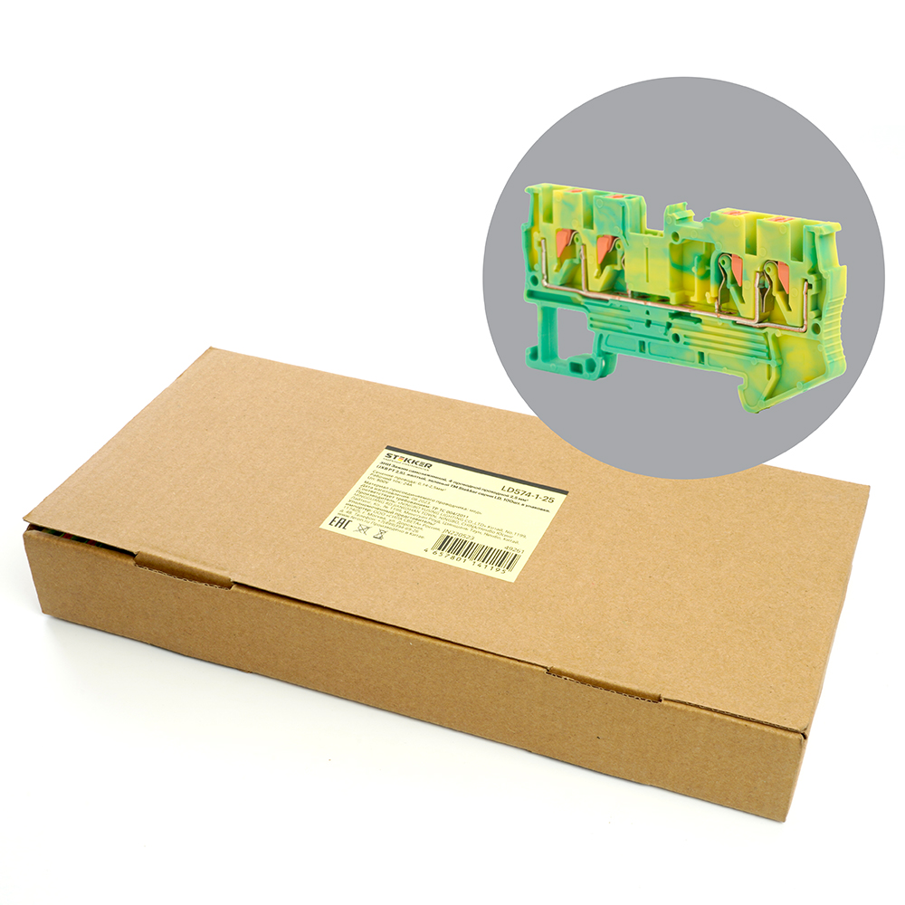 LD574-1-25 ЗНИ Зажим самозажимной, 4-проводной проходной 2,5 мм² (JXB PT 2,5), желтый, зеленый