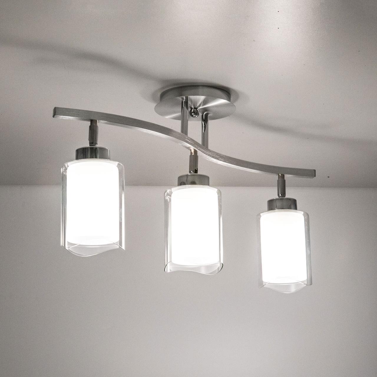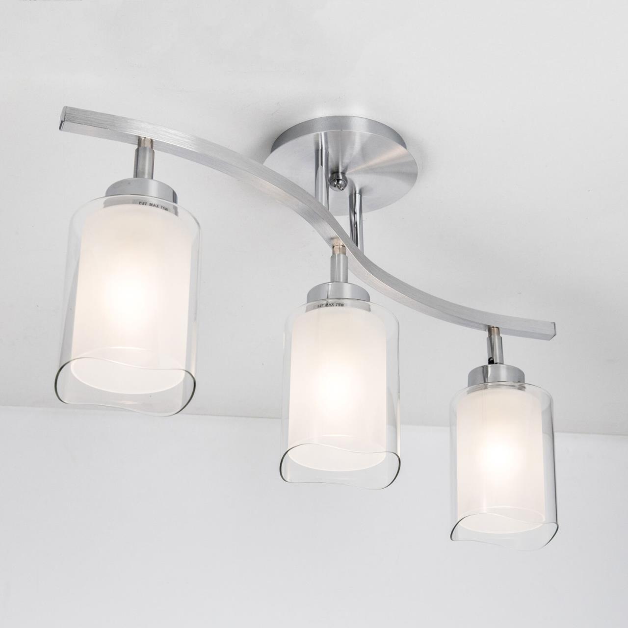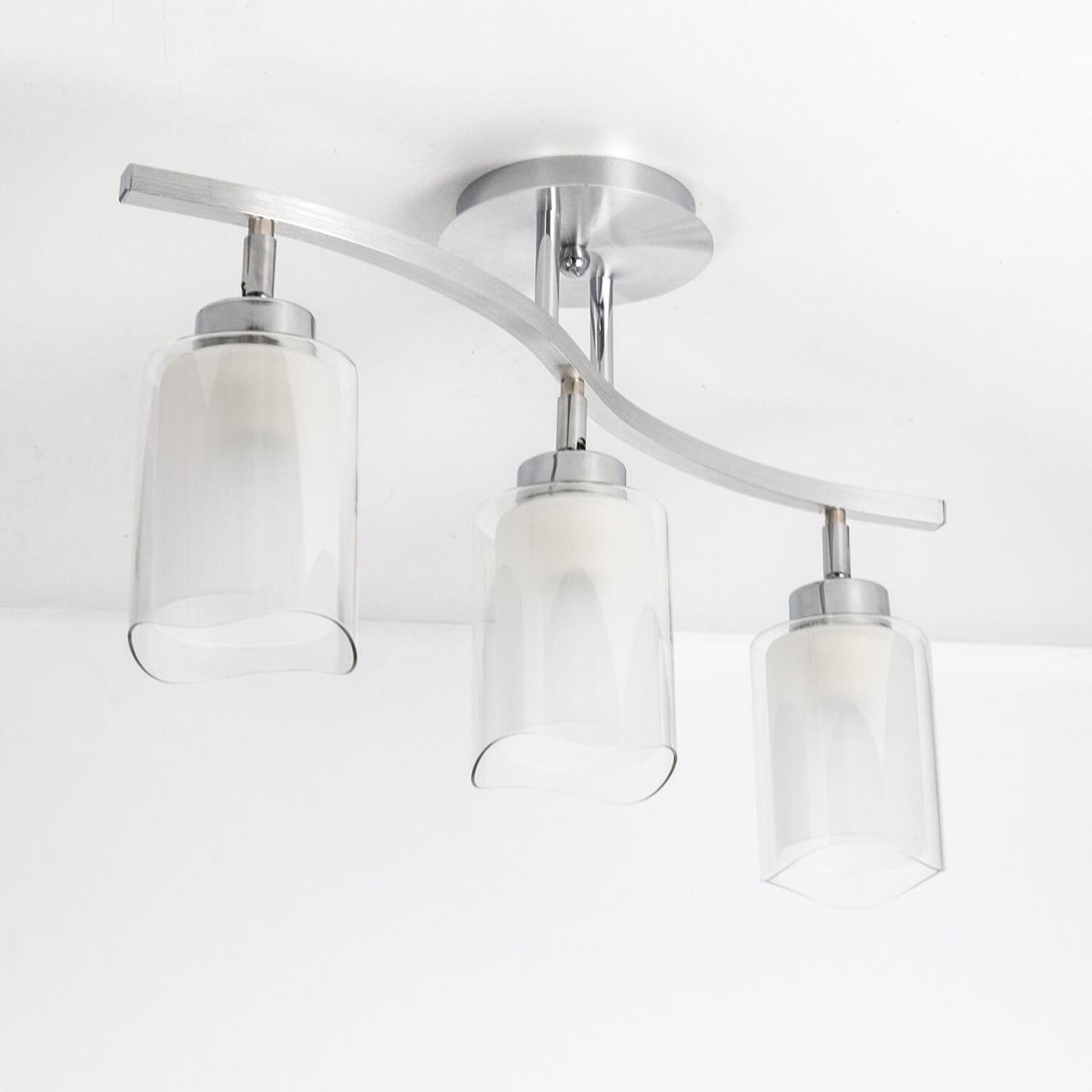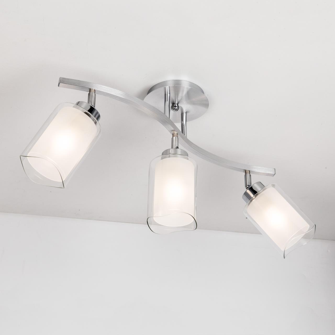 У светильников коллекции «Аэлита» есть шарниры, с помощью которых возможно направлять плафоны в разные стороны. С помощью поворотных плафонов можно как распределить свет в комнате равномерно, так и видоизменить дизайн светильников так, как вам это больше всего понравится. Серия отлично подойдет для таких мест как гостиная, кабинет, прихожая, спальня. Плафоны выполнены из стекла. Основание светильника - высококачественный металл. Плафон состоит из двух частей: прозрачной внешней и полупрозрачной внутренней. Прозрачная часть плафона очень облегчает внешний вид всей конструкции, за счёт неё светильники смотрятся очень изящно. Полупрозрачная внутренняя часть плафона даёт возможность добиться максимальной яркости, но вместе с тем свет мягкий, рассеянный. Цвет основания выполнен в цвете алюминий и хром, который отлично подойдет для любых решений интерьера. В конструкции используются качественные термостойкие патроны, позволяющие применять лампы накаливания до 75 ватт включительно, соответственно энергосберегающие или светодиодные лампы можно применять любые, без ограничения по мощности. Светильник имеет защиту от влаги и пыли — IP20 и предназначен для использования в домашних интерьерах со средней влажностью. Трёх рожковая модель универсальна тем, что её можно смонтировать, как по длинной стороне комнаты, так и поперёк помещения. Иногда идеальное решение – монтаж по диагонали, из угла в угол. Площадь освещения данной модели до 11 квадратных метров.