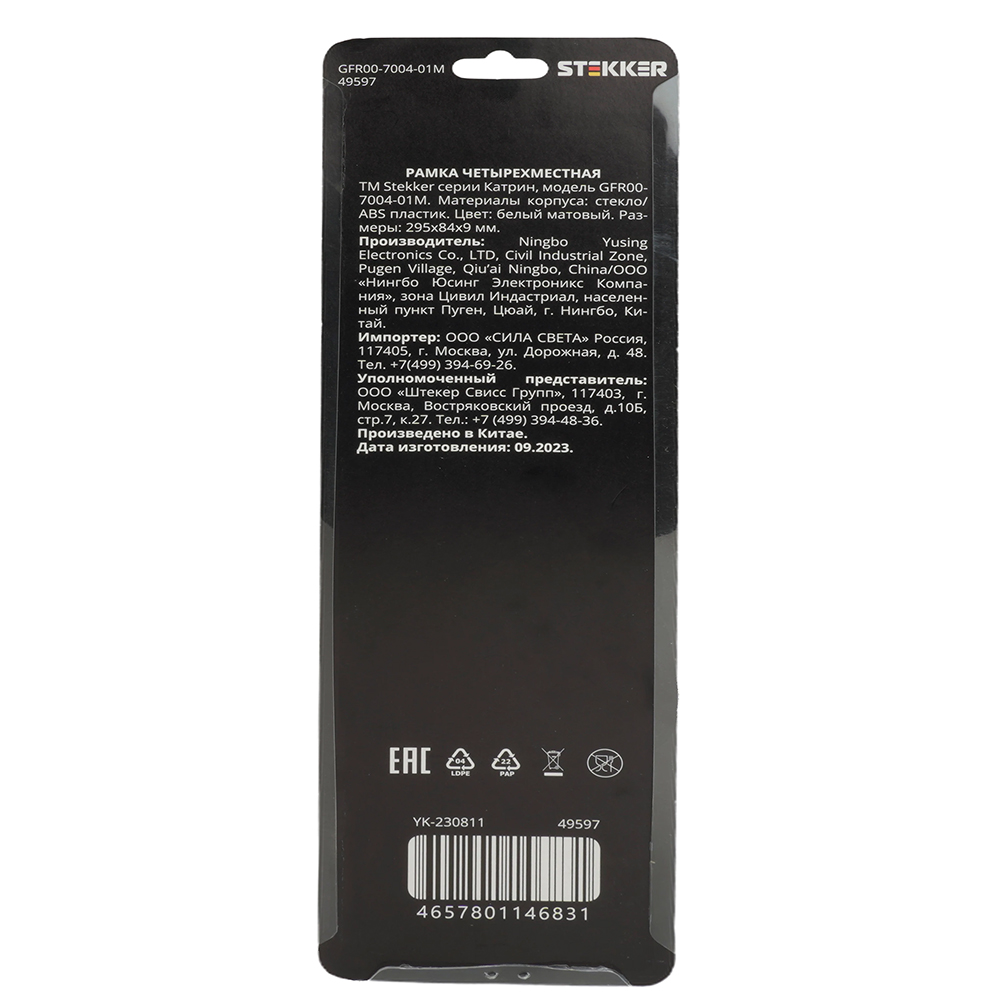 Рамка STEKKER GFR00-7004-01M на гнездо, , . Материал: Стекло/ABS пластик, цвет белый матовый, размер 295*84*9мм. Номинальное напряжение , номинальный ток , диапазон рабочих температур ,