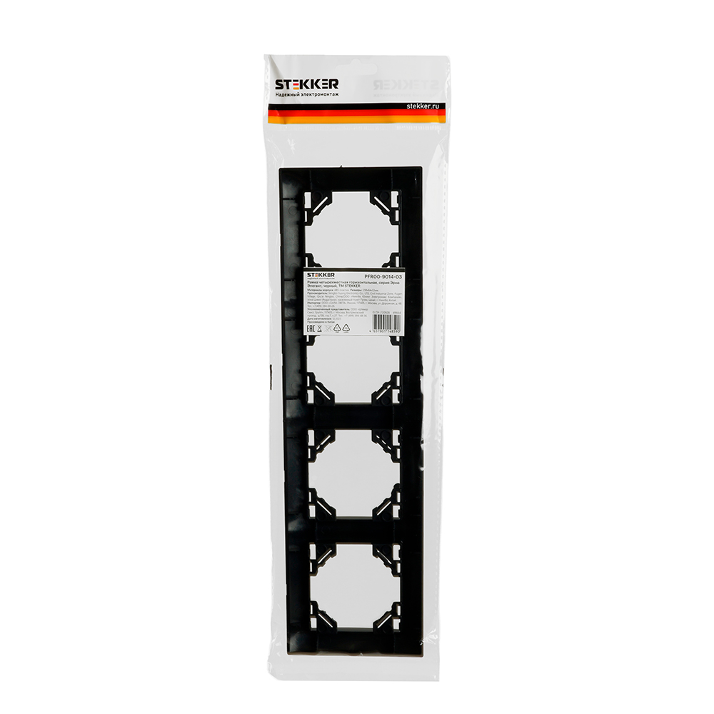 Рамка STEKKER PFR00-9014-03 (расстояние между монтаж. отверестиями: по гориз. - 270мм, по вертик.- 45мм) на гнездо, , . Материал: ABS пластик, цвет черный, размер 296*83*11мм. Номинальное напряжение , номинальный ток , диапазон рабочих температур ,