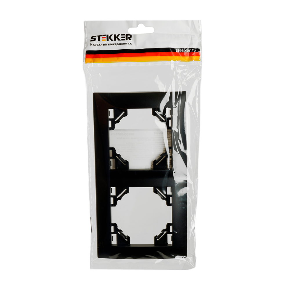 Рамка  STEKKER PFR00-9012-03 (расстояние между монтажными отверстиями: по гориз. - 126мм, по вертик.- 45мм) на  гнездо, , . Материал: ABS пластик, цвет черный, размер 153*83*11мм. Номинальное напряжение , номинальный ток , диапазон рабочих температур ,