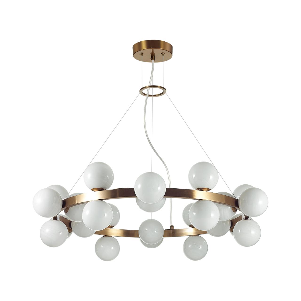 Образ шаров в линии Magia создает воздушную атмосферу. Белое глянцевое молочное стекло выполнено с эффектом облачного узора, придает визаульное сходство светильнику с алебастром.