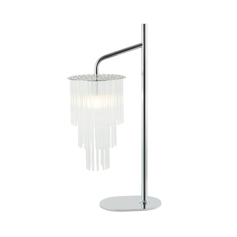 Светильник настольный из коллекции Imposio / Импозио выполнен из металла, гальванизированного в цвет хрома. Декор из стеклянных прозрачных трубочек крепится на нержавеющую сталь, отполированную до зеркального блеска. Современная форма и высокое качество светильников идеально подойдут в современные и дизайнерские интерьеры.
