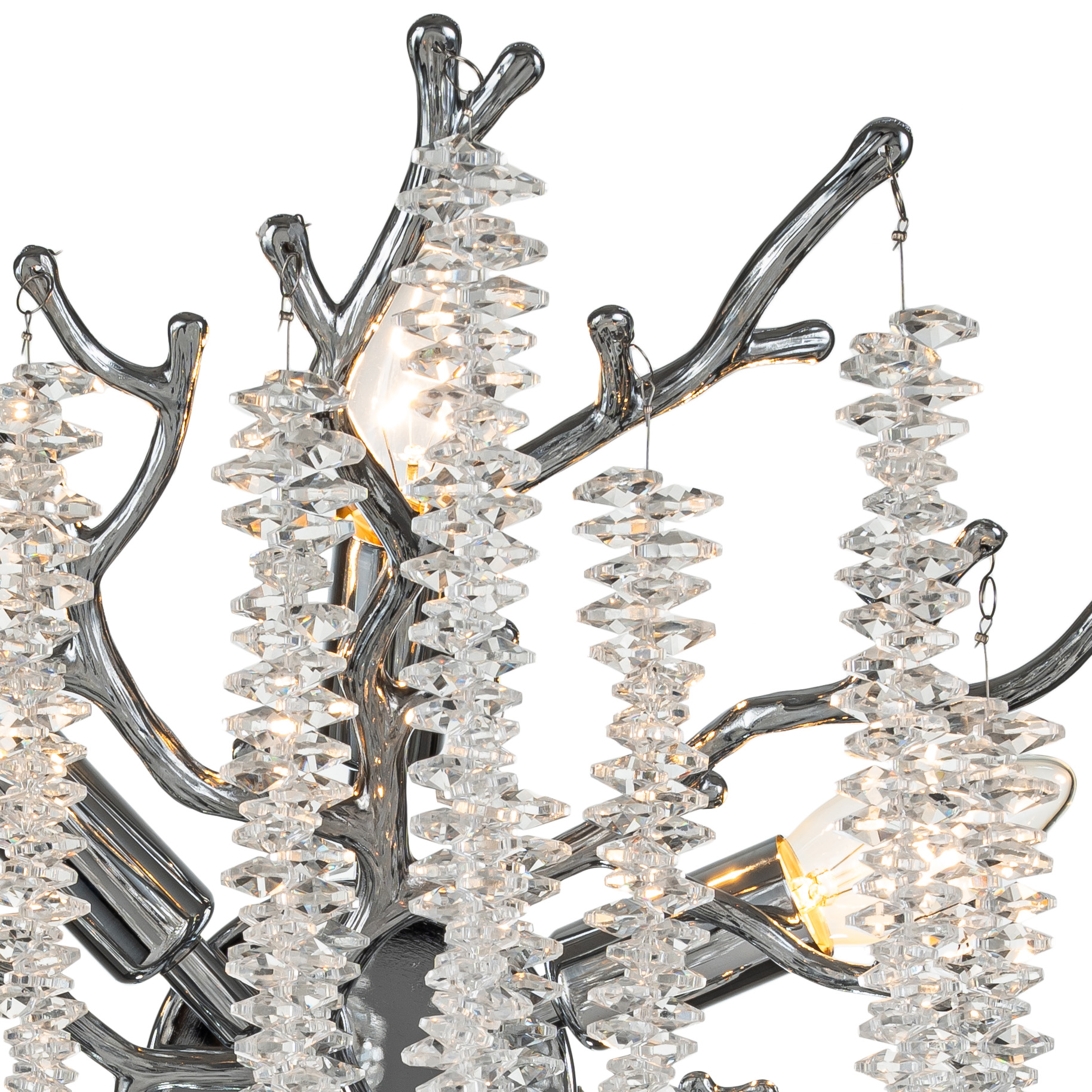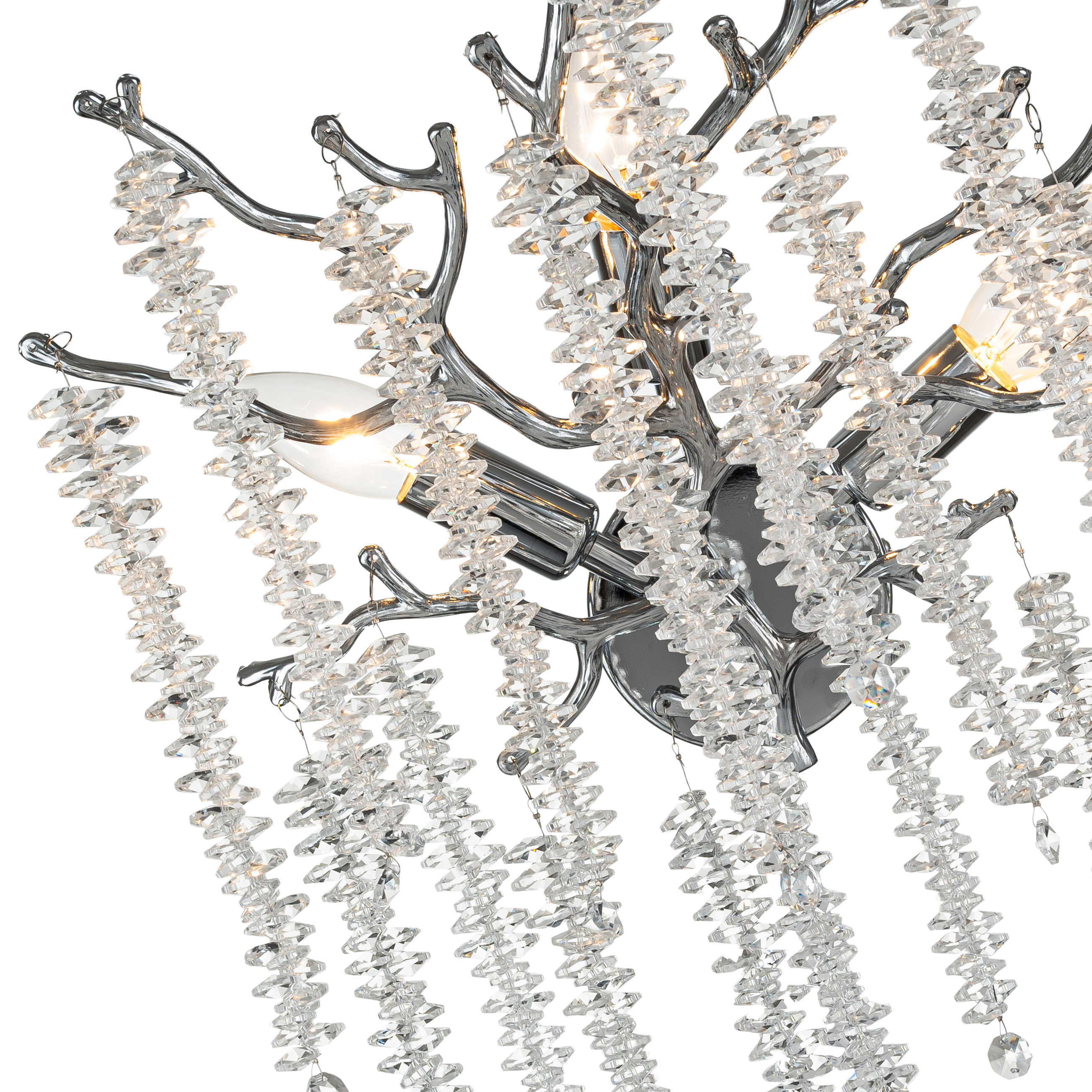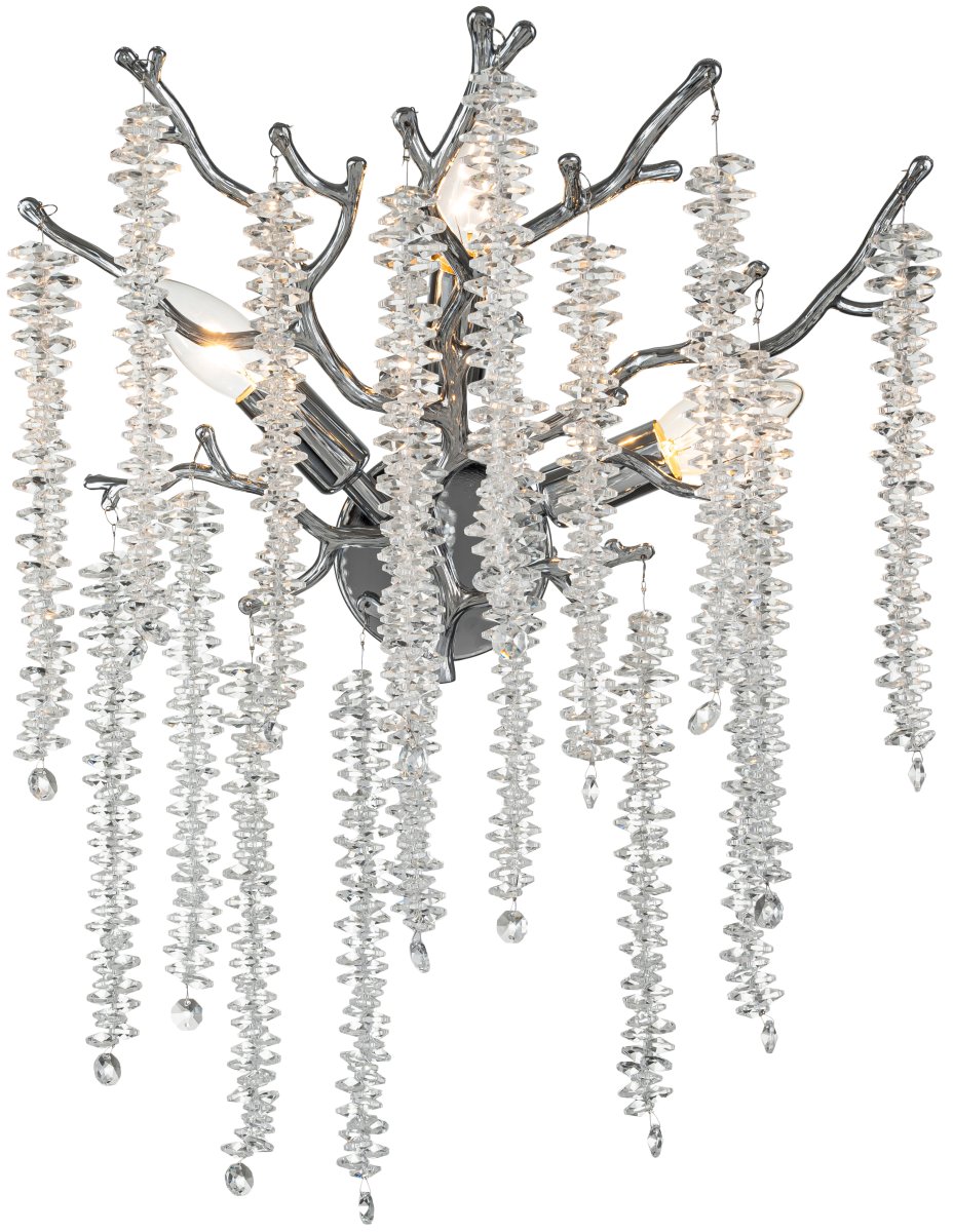 Светильник настенный коллекции Eiva / Эйва выполнен из сплава алюминия, гальванизирован в цвет хрома и декорирован гроздьями из хрусталя в форме октагон. Светильники коллекции отличает повышенное содержание хрусталя (18 хрустальных гроздьев) и лампы с цоколем Е14. Из данной коллекции светильников можно сделать индивидуальный заказ любого цвета и размера.